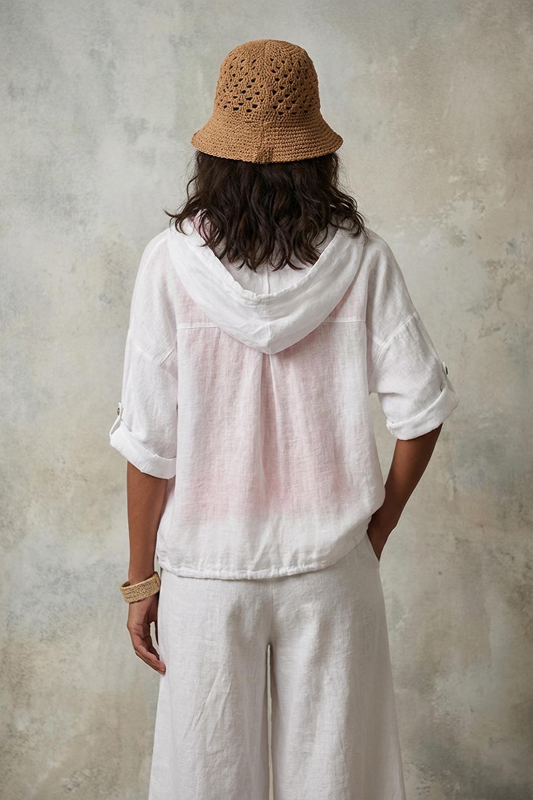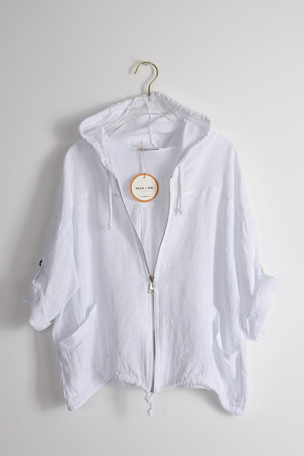 BÍLÁ LEHKÁ LNĚNÁ BUNDA S KAPUCÍ PECA del SOL
