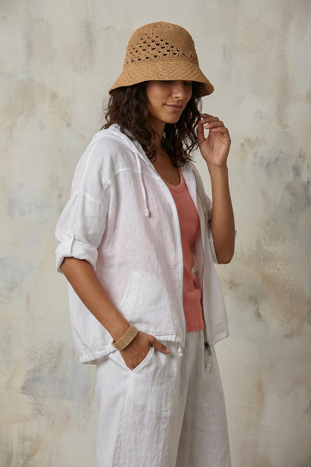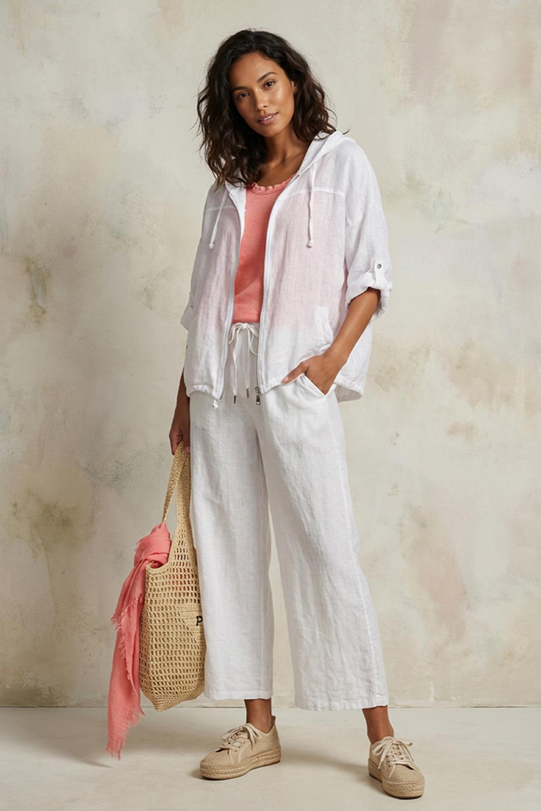 • bílá dámská lněná bunda PECA del SOL skvěle zapadne do jarních i letních outfitů, je lehká a vzdušná
