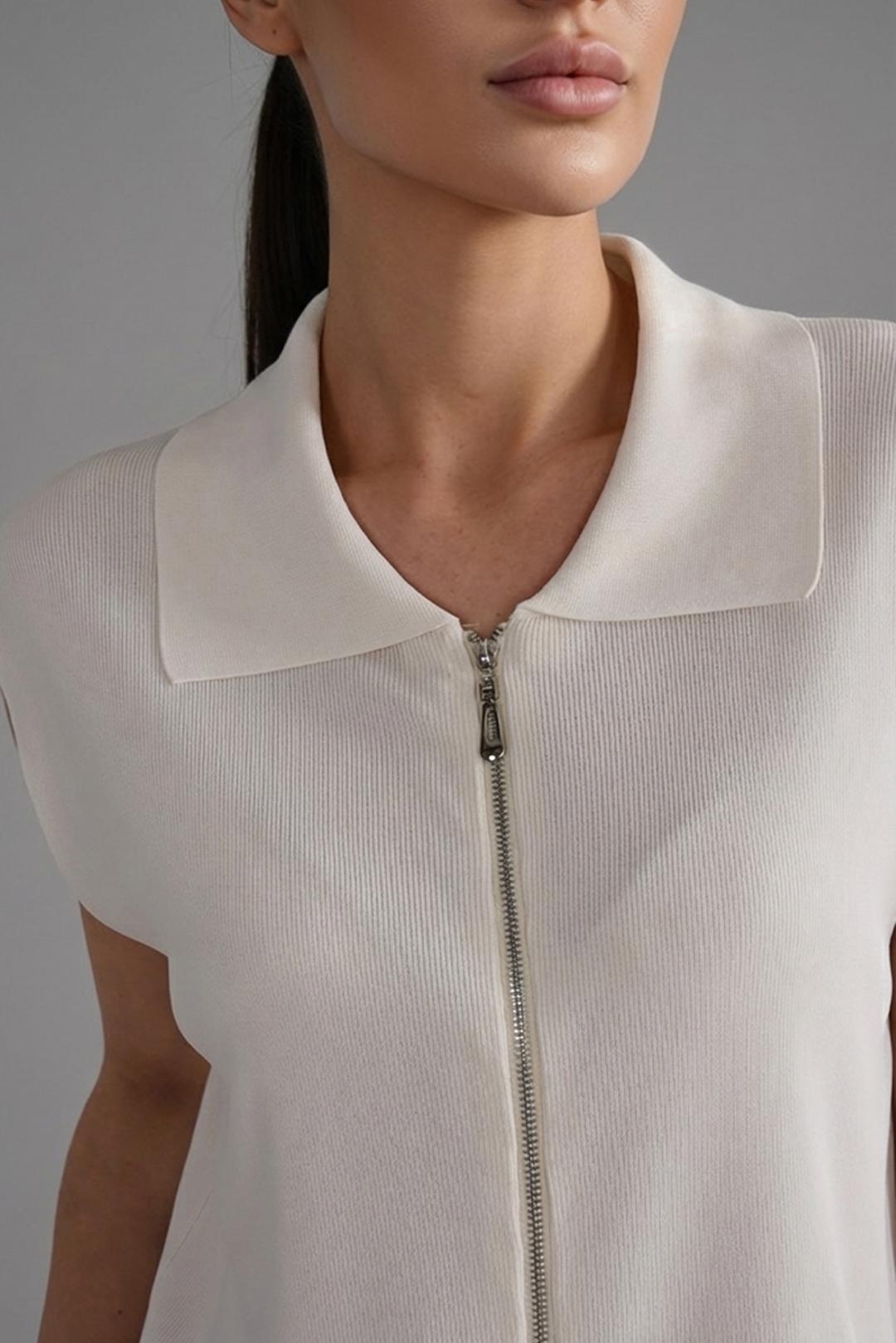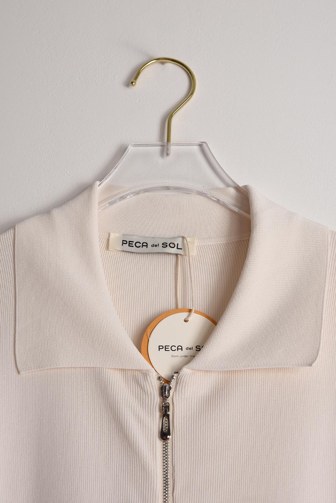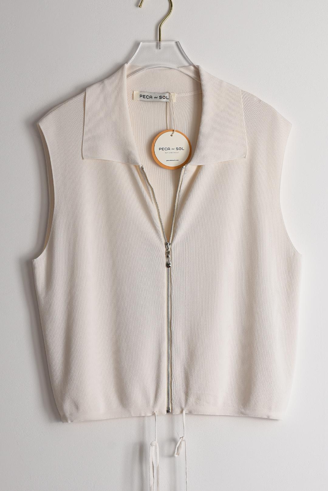 • dámská svetrová vesta se zipem PECA del SOL v čistém, krémově laděném tónu přináší svěží minimalismus s lehkým nádechem sportovní elegance