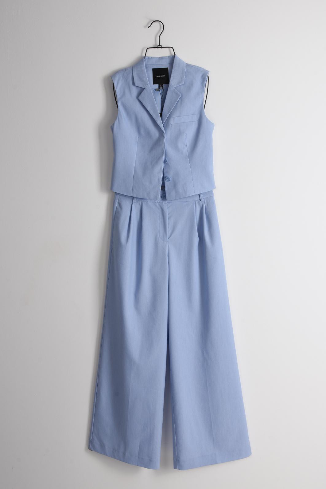 • modré wide leg kalhoty tvoří s vestou dokonale sladěný set, který vypadá chic, moderně a velmi aktuálně