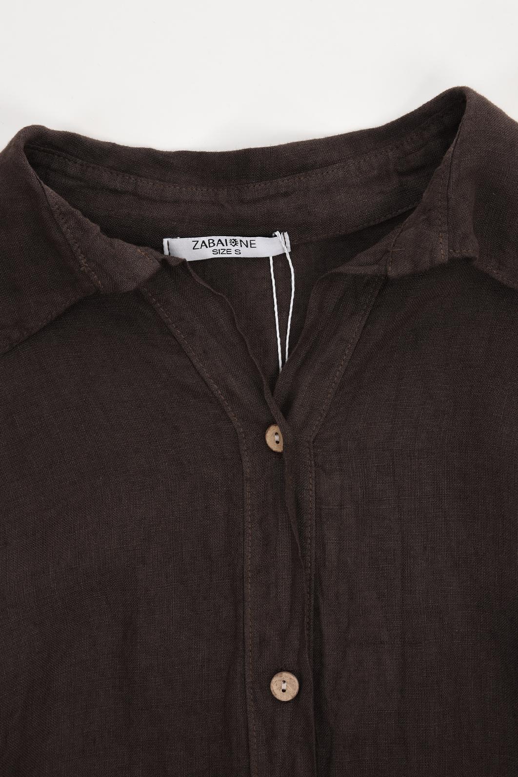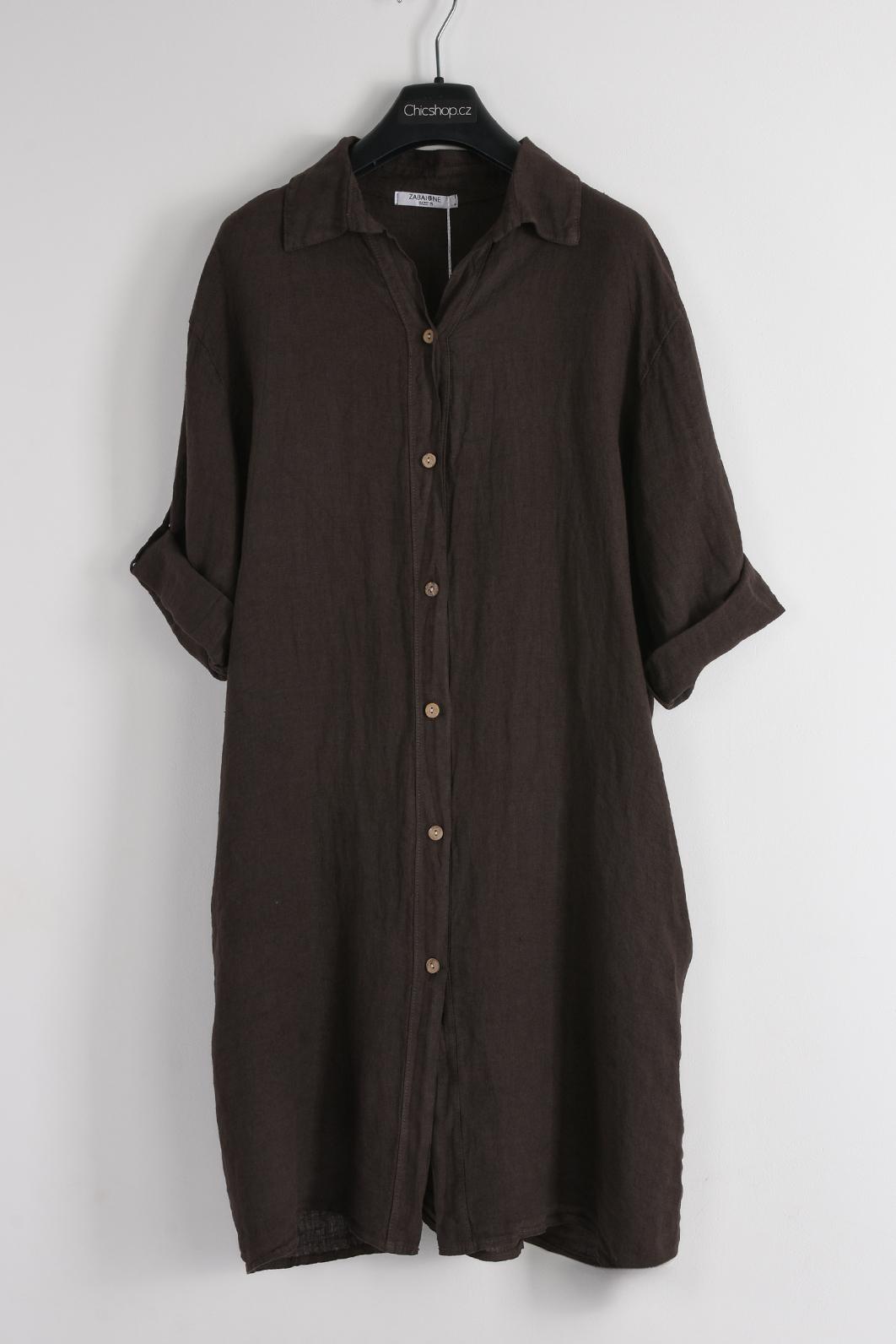 KOŠILOVÉ LNĚNÉ ŠATY S KAPSAMI HNĚDÉ Zabaione