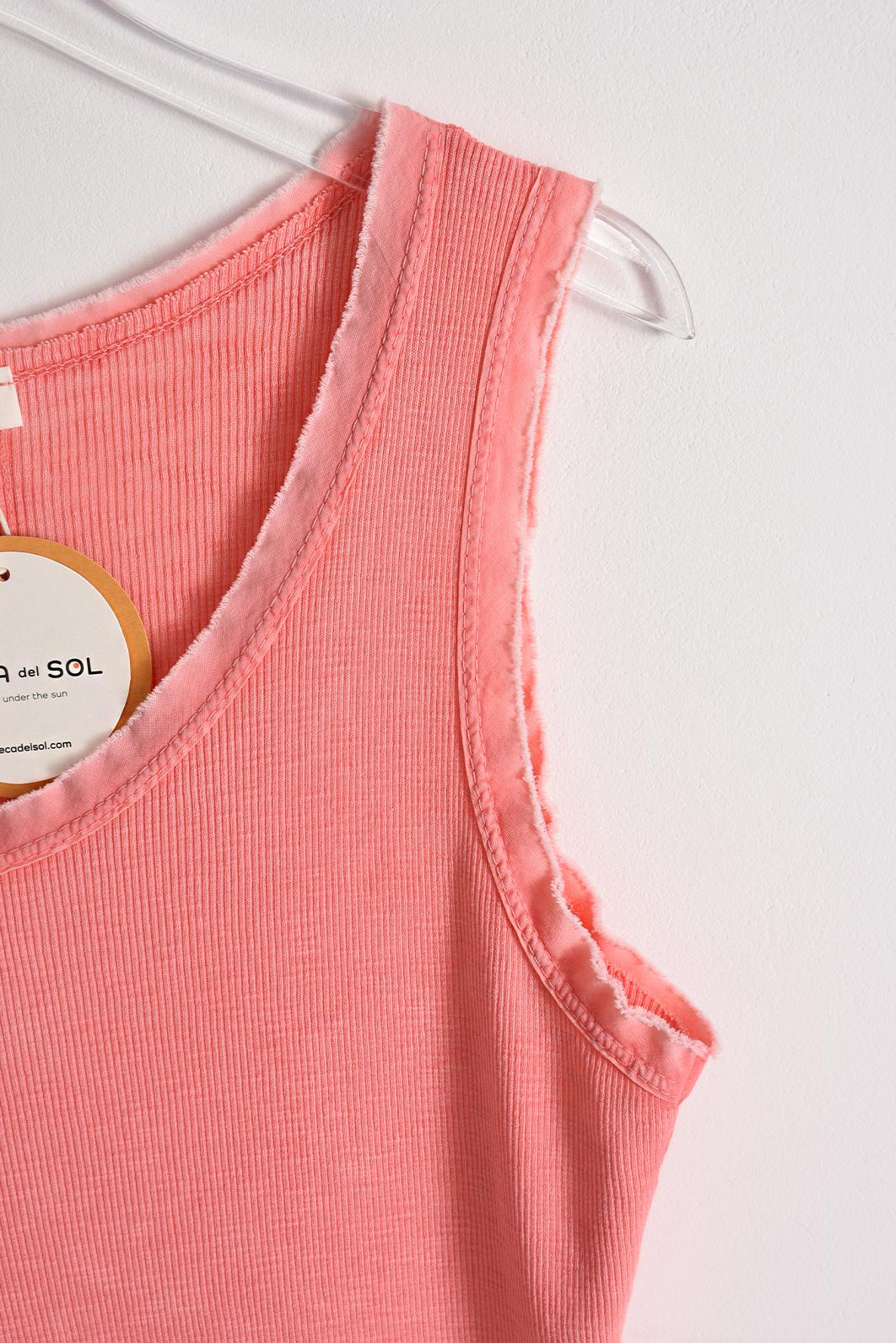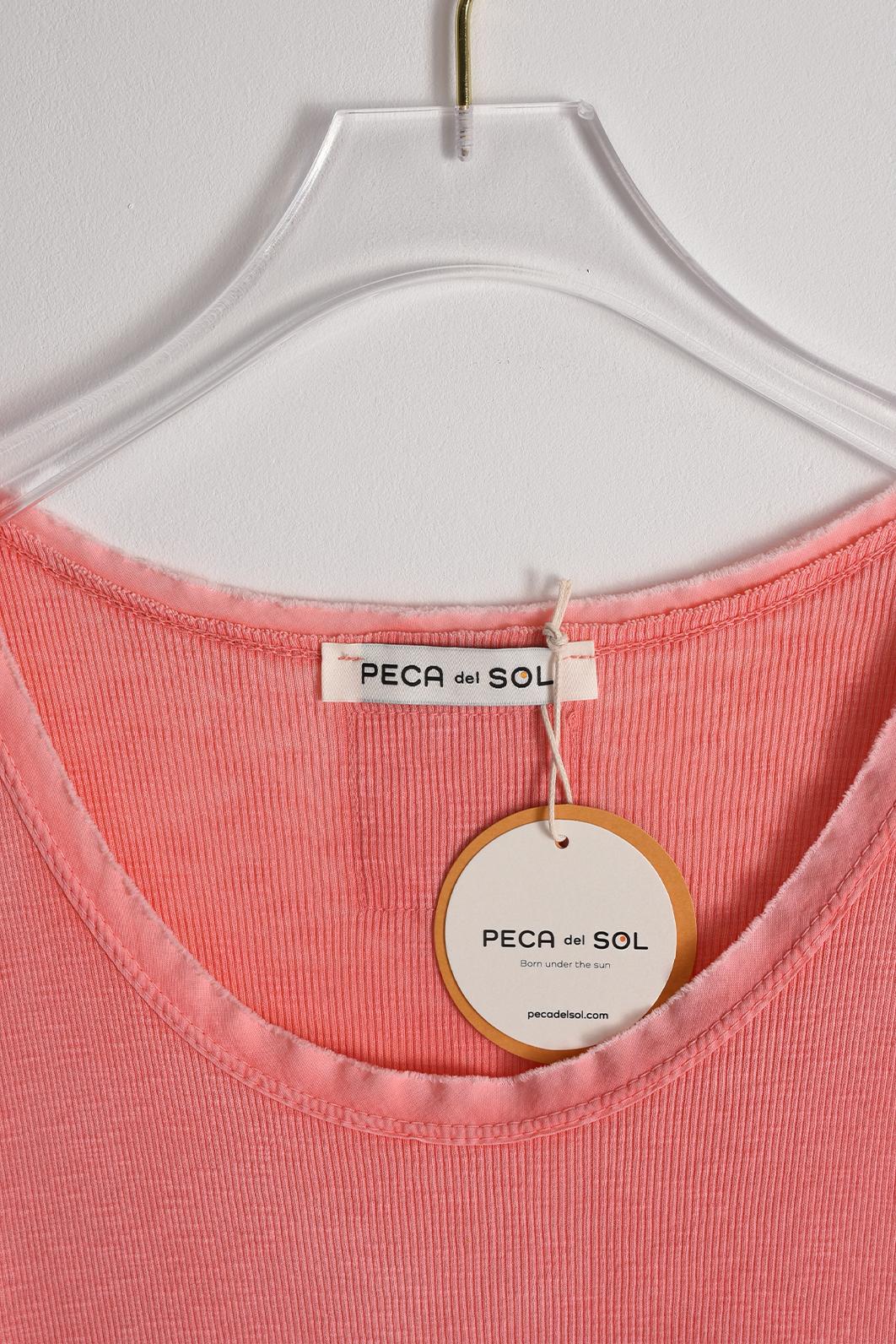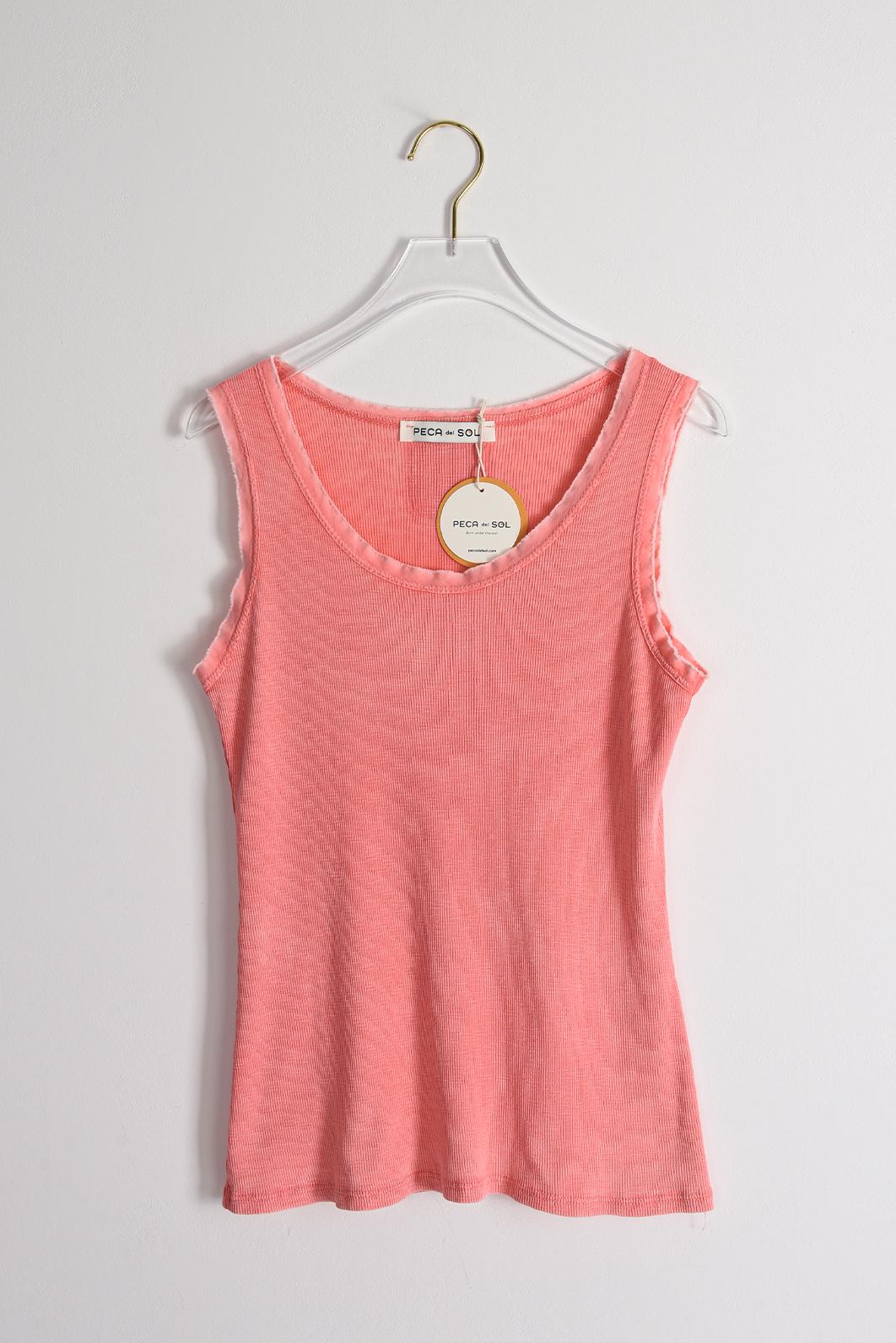 • žebrované bavlněné tílko dámské PECA del SOL v jemném korálovém odstínu snadno rozzáří každý letní outfit, je svěží a ženské