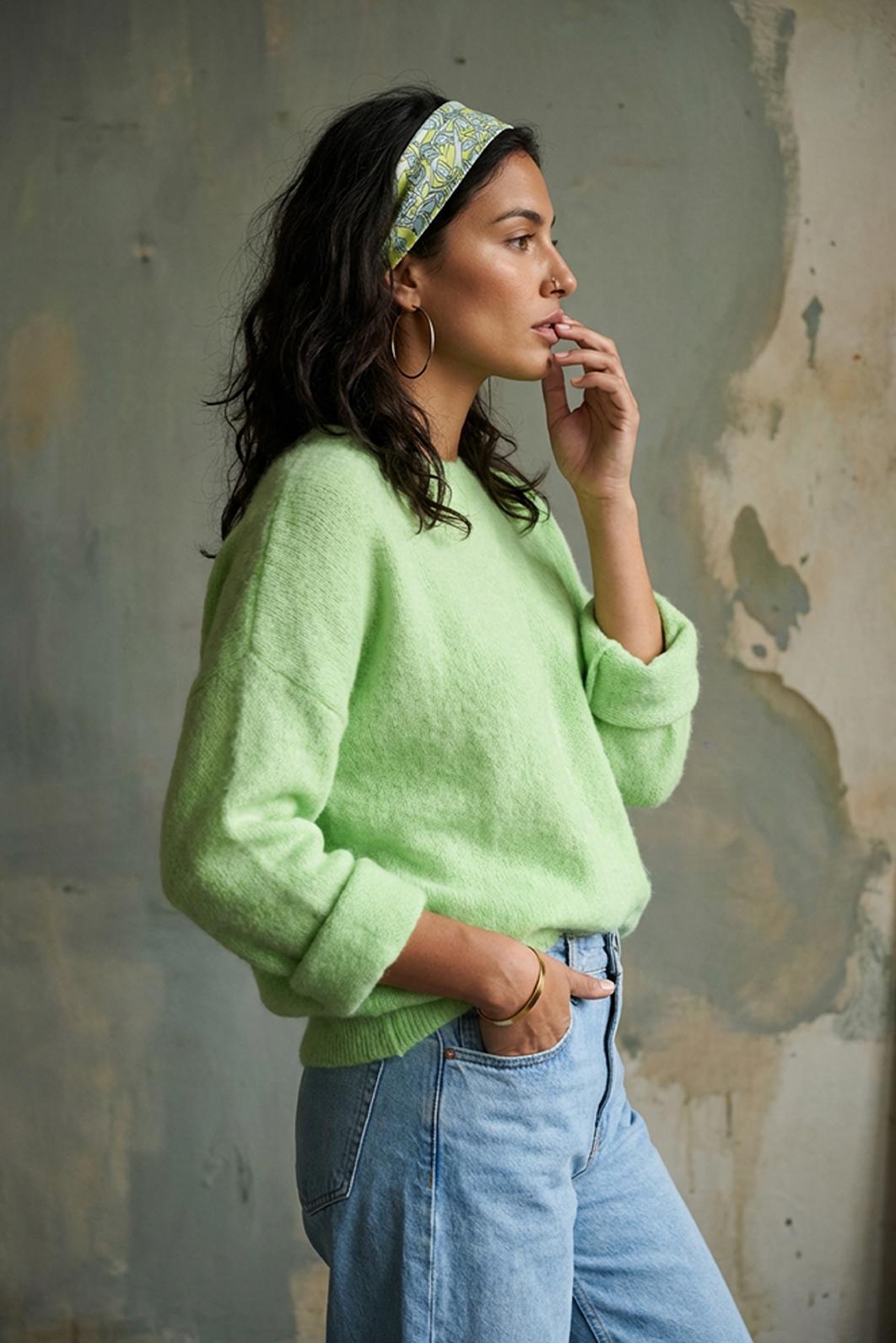 • fresh & chic dámský svetr z alpaky PECA del SOL v odstínu Lime Cream vnáší do outfitu svěží jarní energii s jemným nádechem slunce a přírody