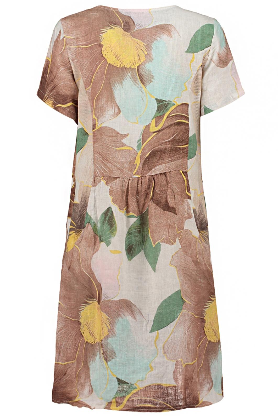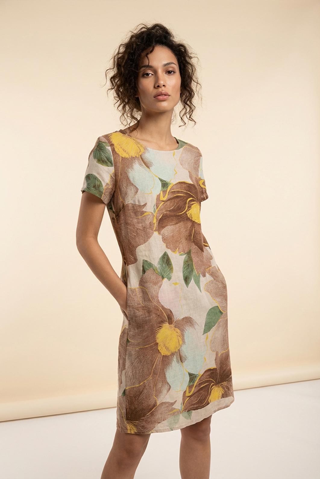 • lněné šaty s květinovým motivem Zabaione v teplých přírodních tónech rozzáří letní šatník a krásně vyniknou na opálené pokožce
