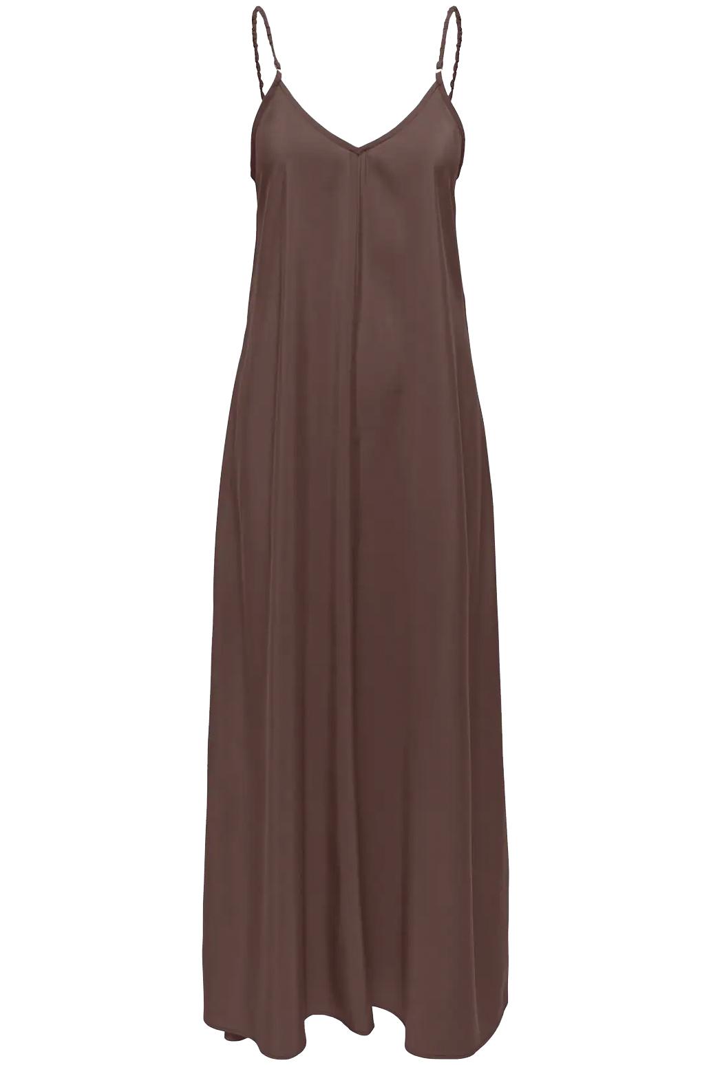 • dlouhé maxi šaty na ramínka Only v čokoládově hnědém odstínu s jemným saténovým nádechem vyzařují eleganci, ale také se snadno nosí i během běžného dne