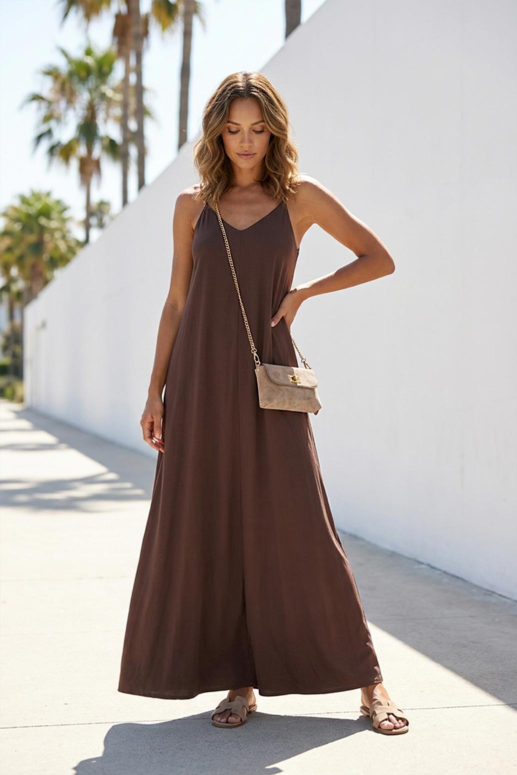 DLOUHÉ MAXI ŠATY NA RAMÍNKA HNĚDÉ Only