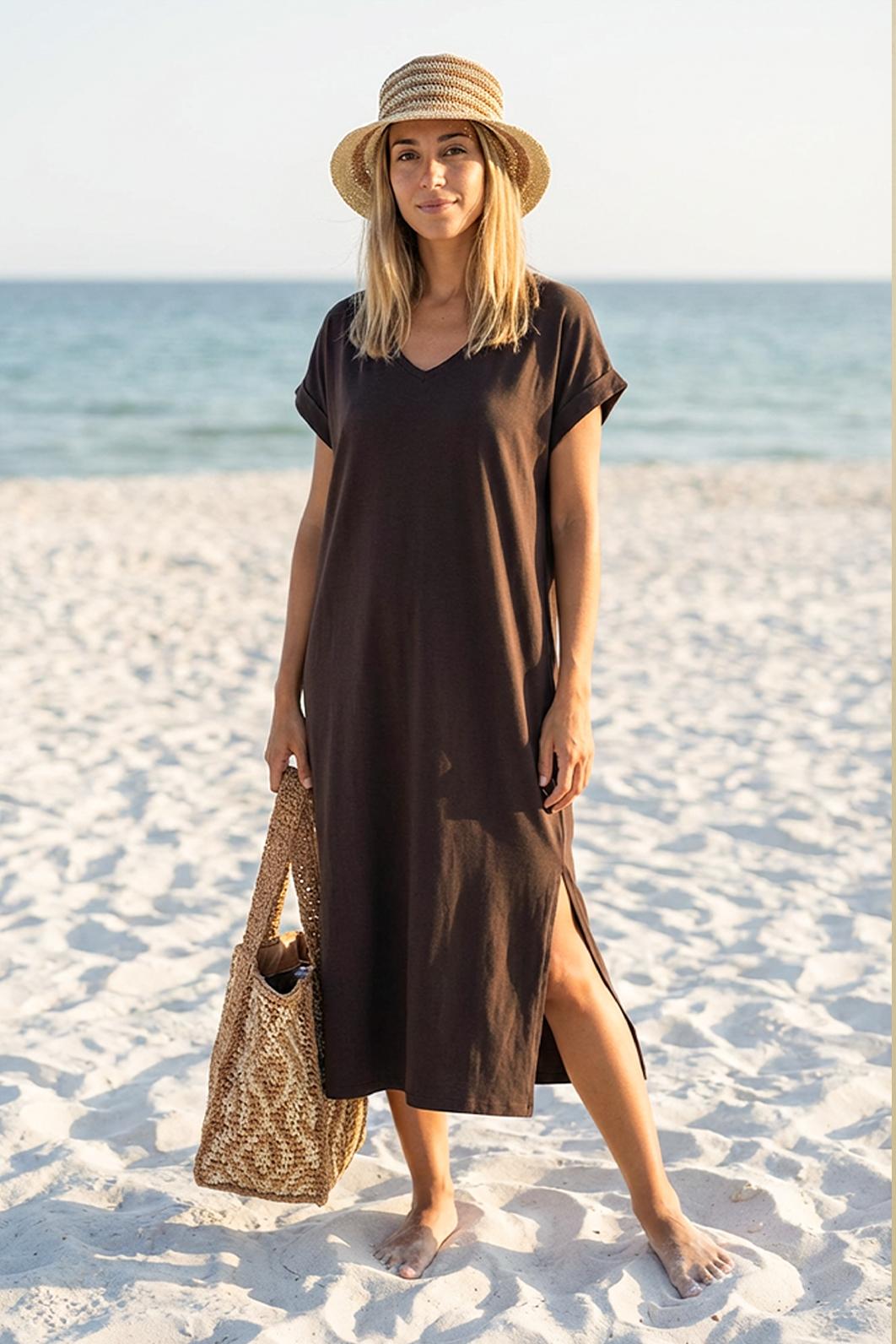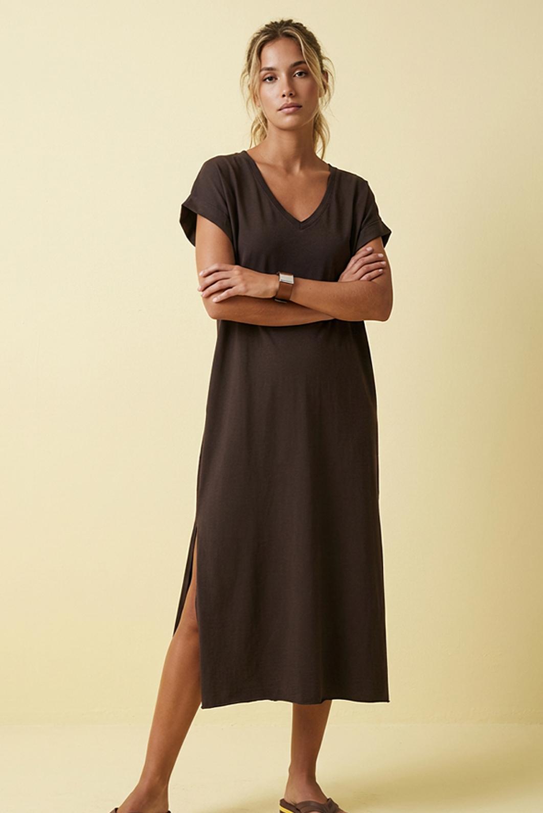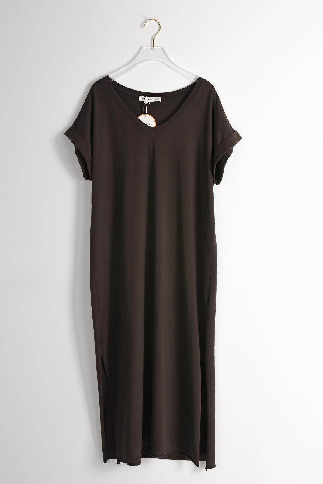 • dámské tričkové šaty dlouhé populární značky PECA del SOL v lahodném čokoládově hnědém tónu si rozumí s minimalismem i vrstvením, stačí pár doplňků a outfit má pokaždé jinou náladu