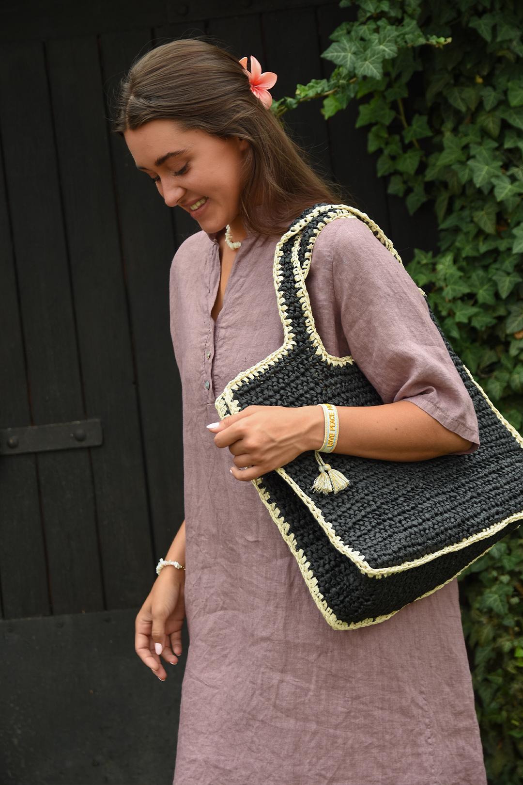 ČERNÁ LETNÍ PLETENÁ KABELKA