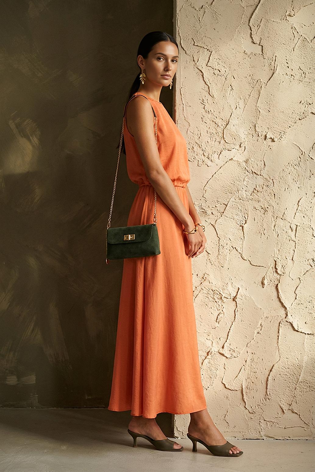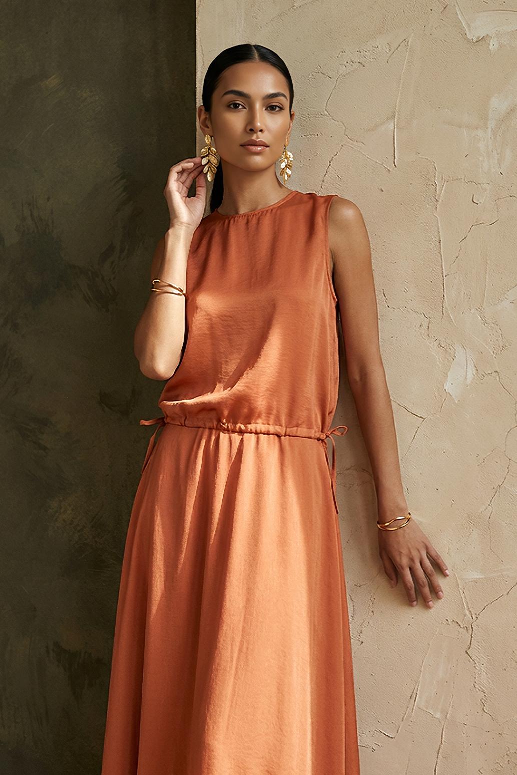 • dlouhá oranžová sukně saténová Vero Moda v cihlovém odstínu zaujme hladkým, jemně lesklým, saténovým povrchem – krásně rozzáří i jednoduchý outfit