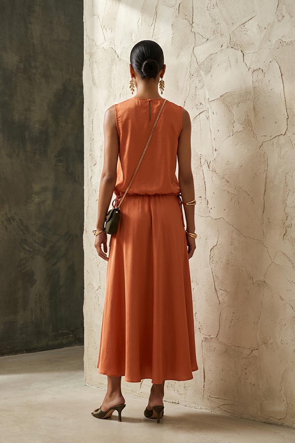 CIHLOVĚ ORANŽOVÁ SUKNĚ SATÉNOVÁ Vero Moda