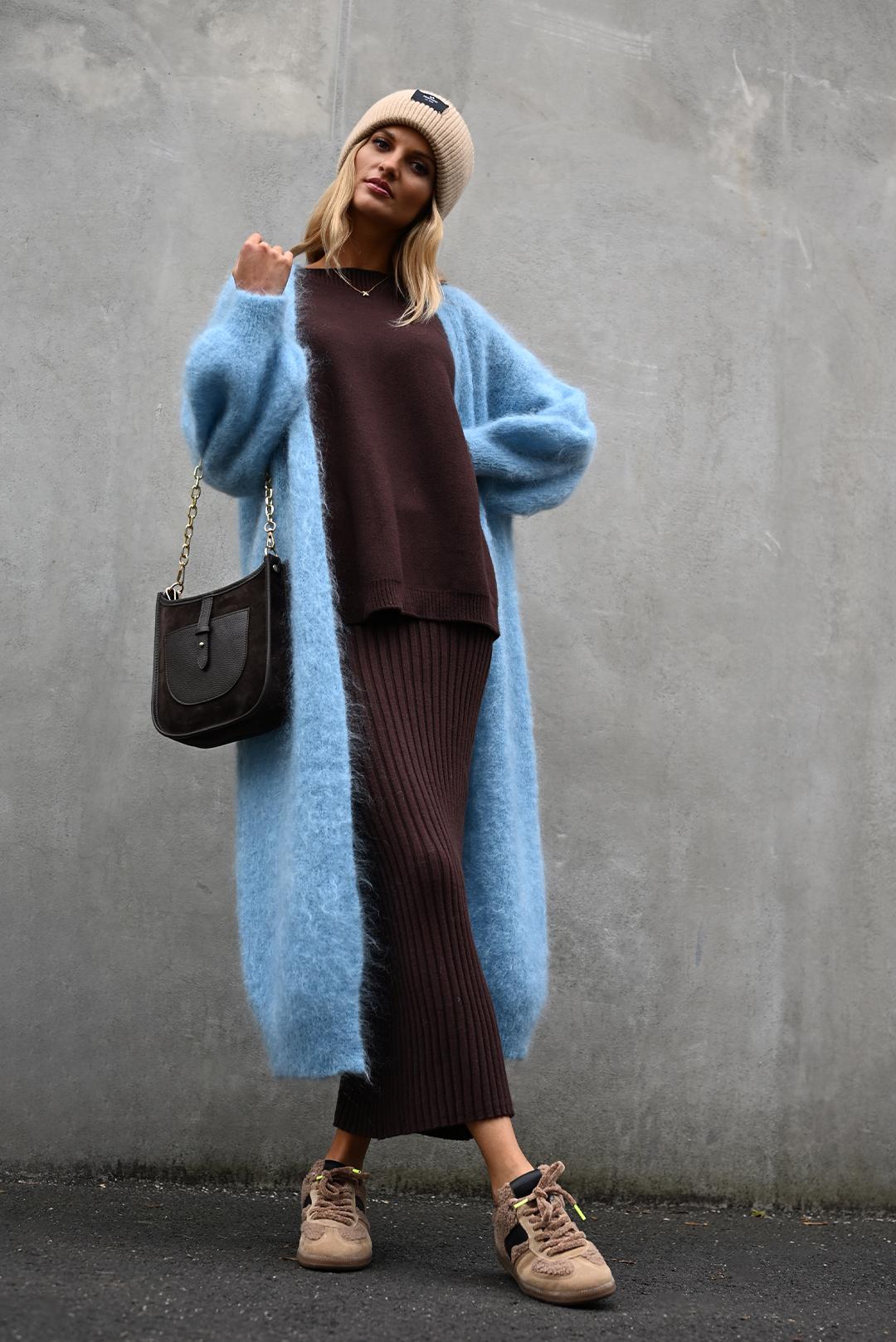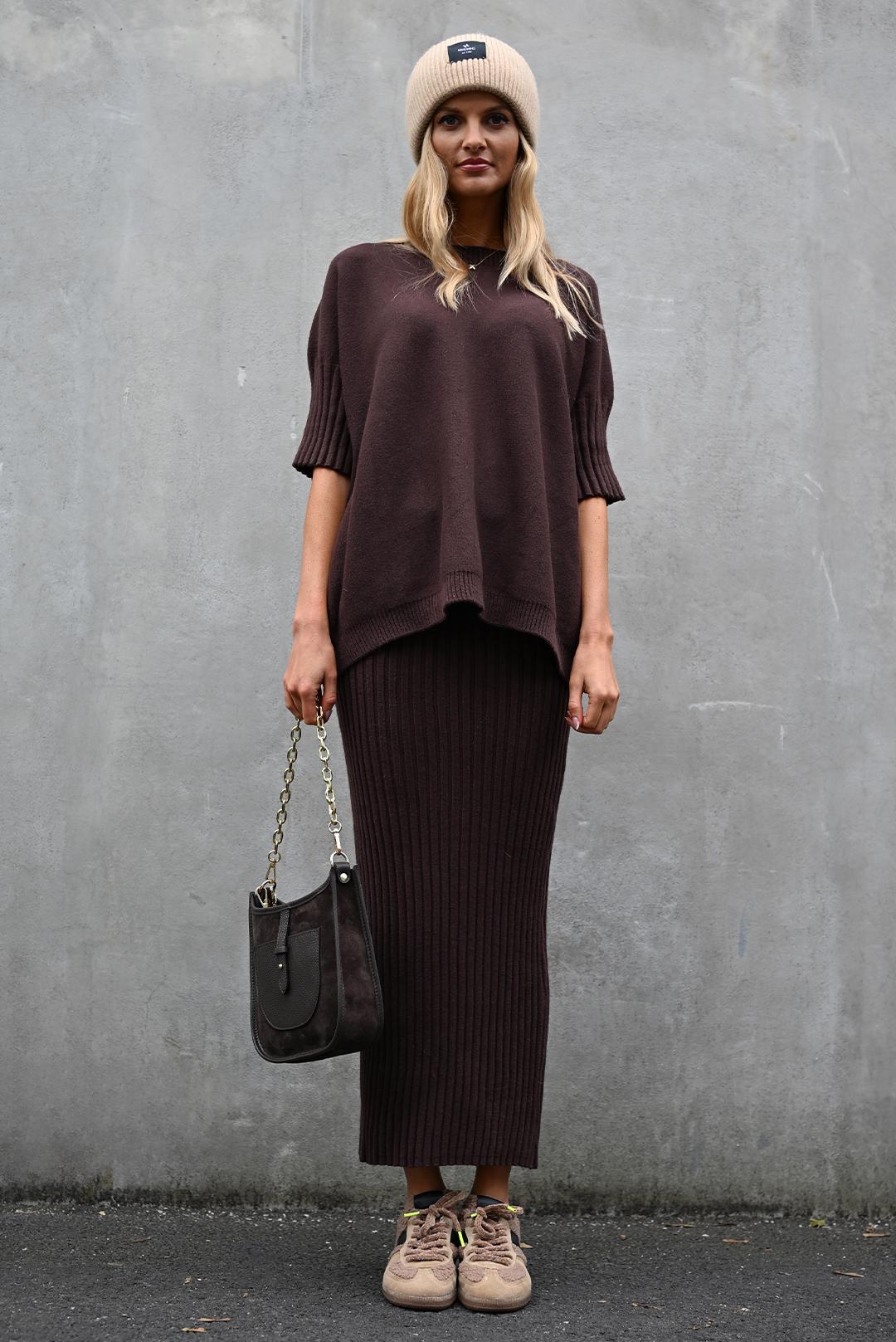 • hnědá úpletová sukně dlouhá od oblíbené značky PECA del SOL je příjemný a měkký kousek z viskózové směsi