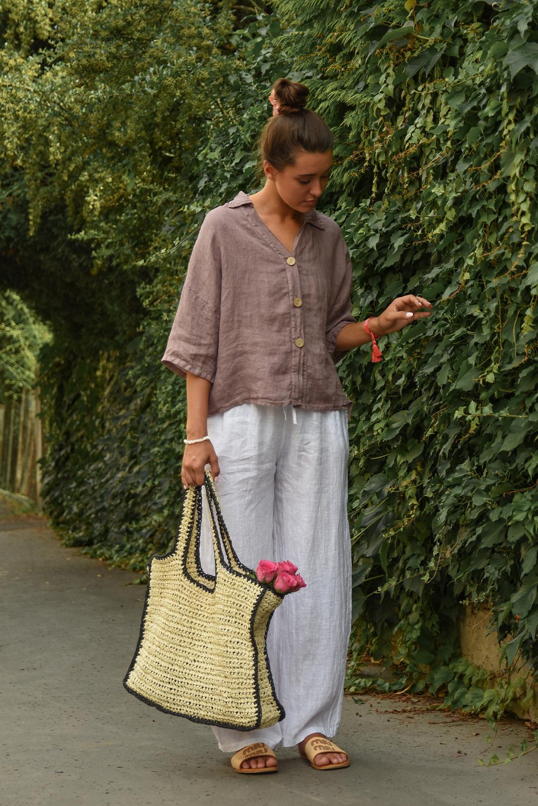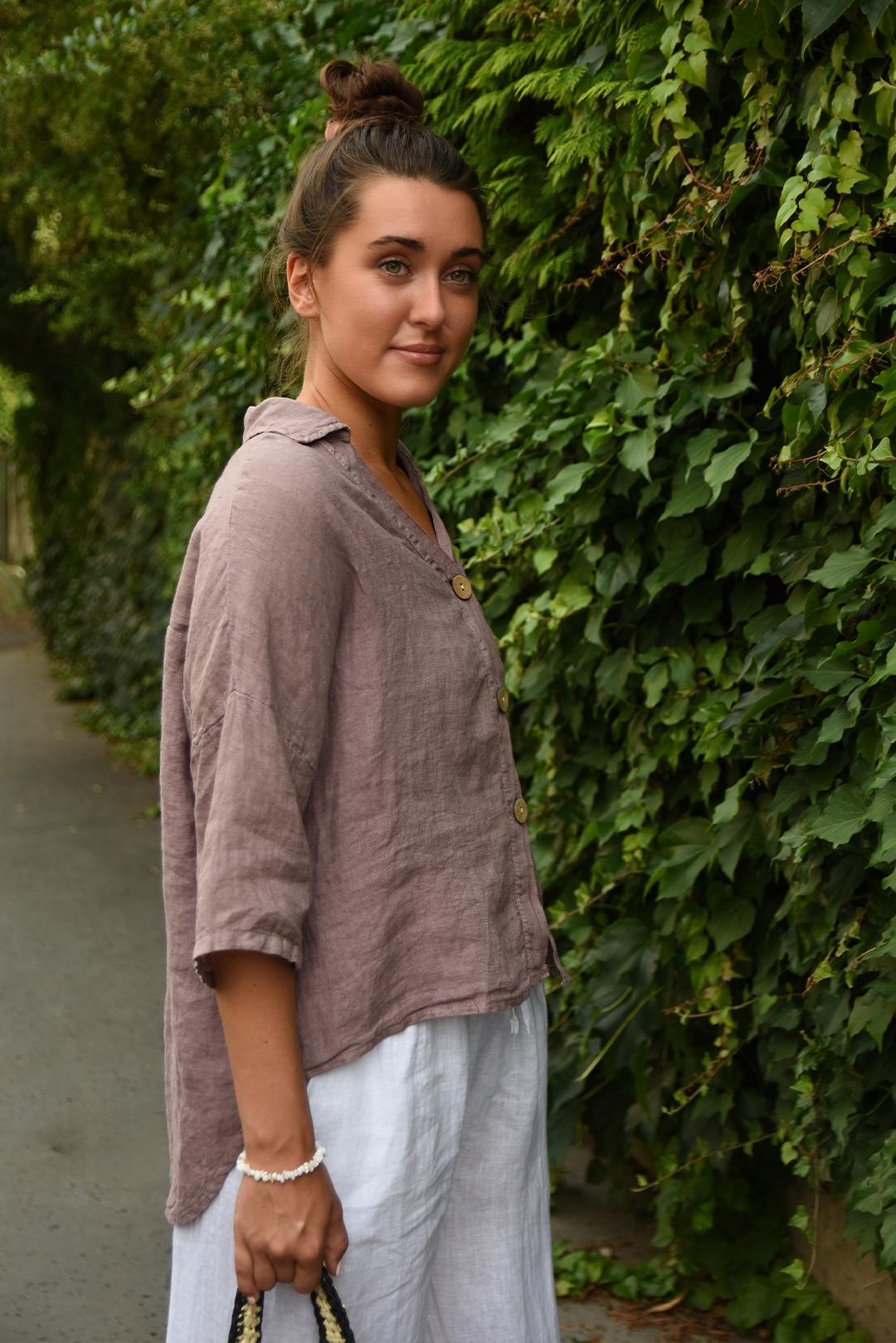 • volnější střih lněné košile krásně splývá podél těla a poskytuje pohodlí po celý den