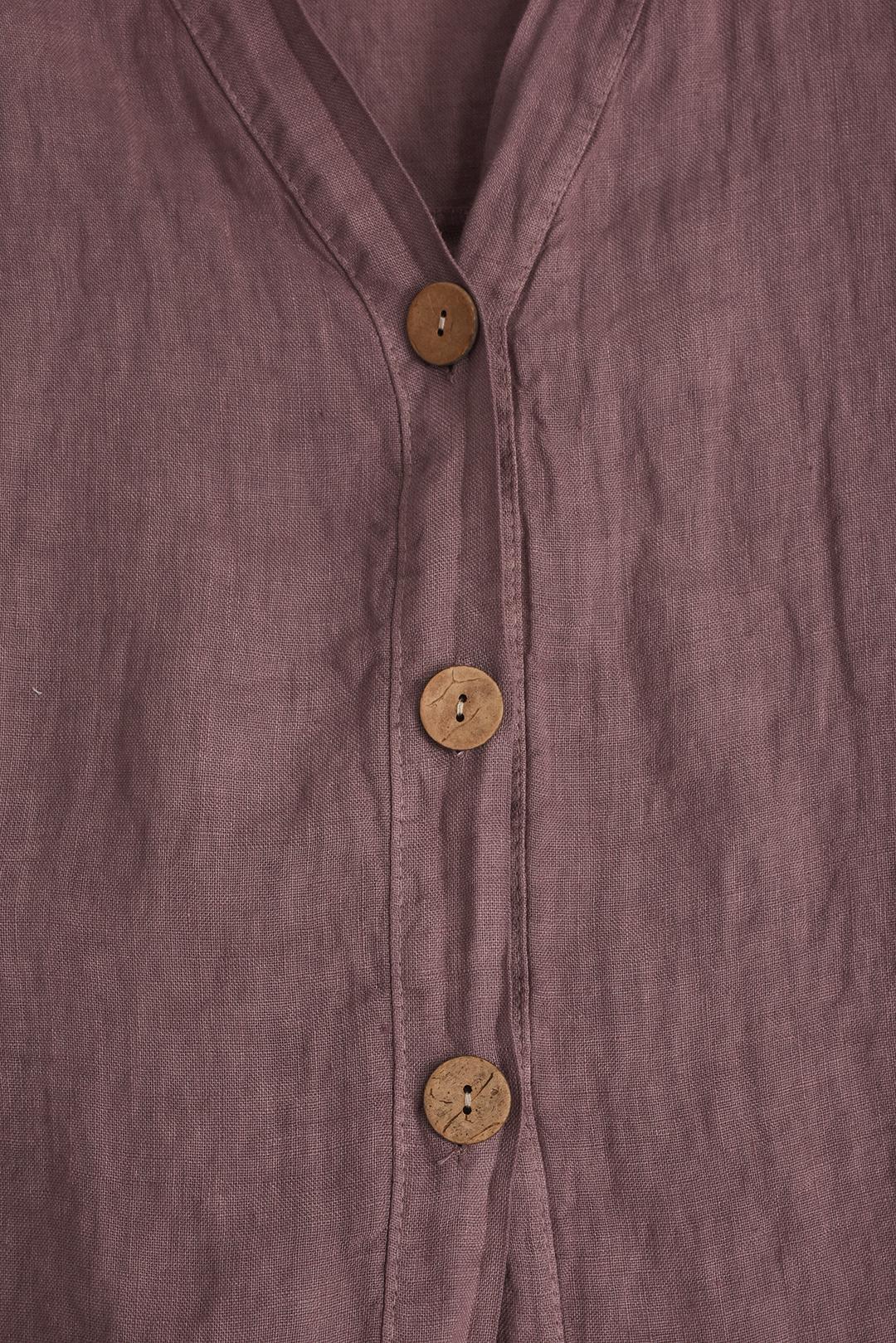 • dřevěné knoflíky v kontrastu s barvou lnu dodávají košili přírodní nádech