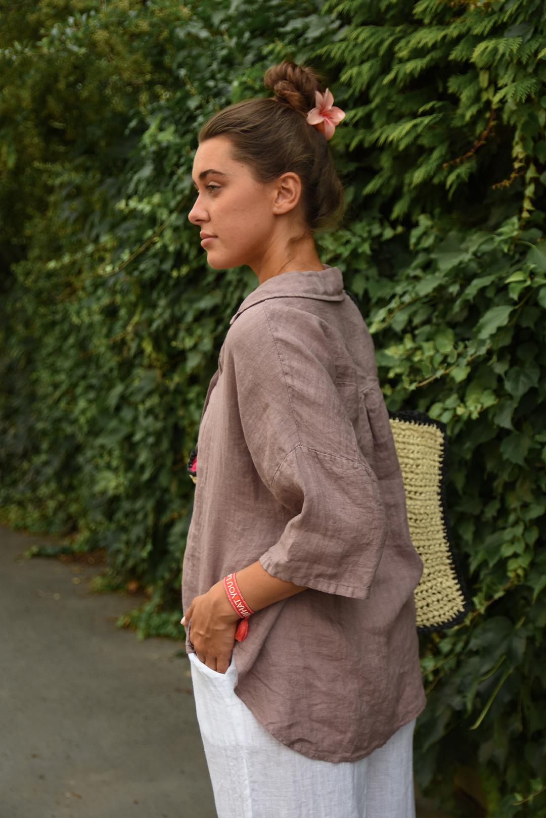 DÁMSKÁ LNĚNÁ KOŠILE SE STAHOVÁNÍM  Chocolate