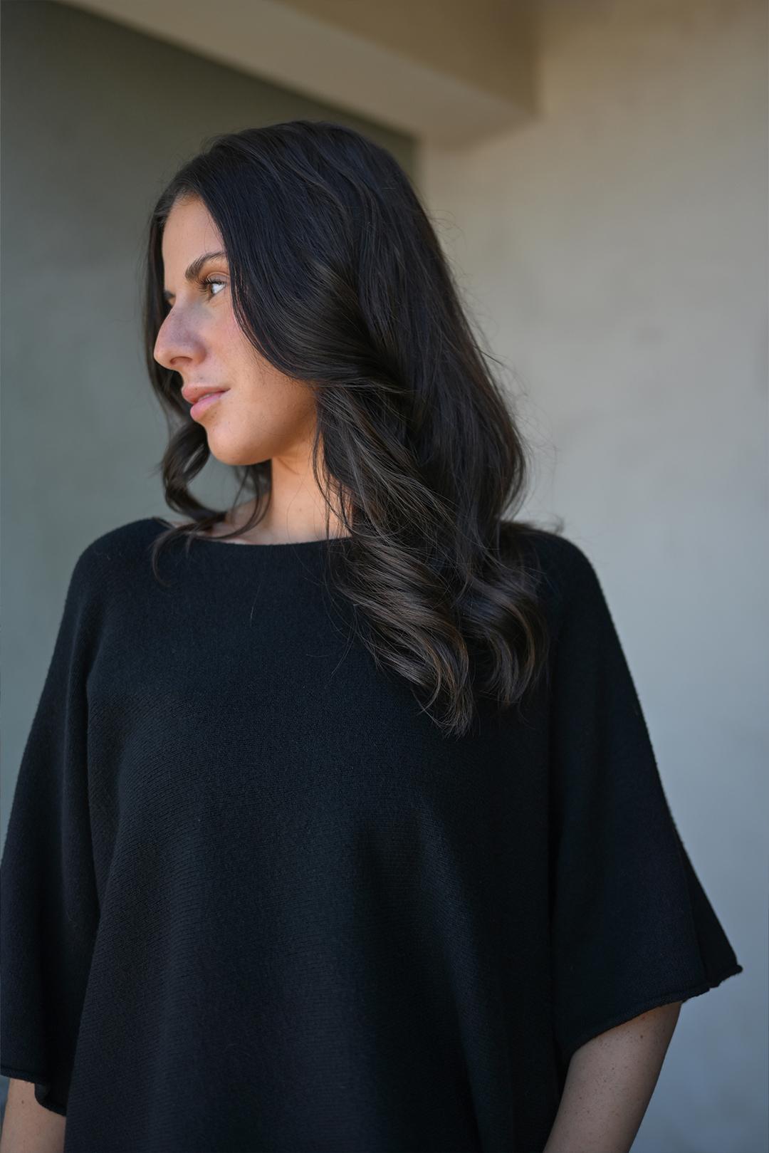 • dámský svetřík černý s krátkým rukávem od značky PECA del SOL minimalistický a přesto nepřehlédnutelný