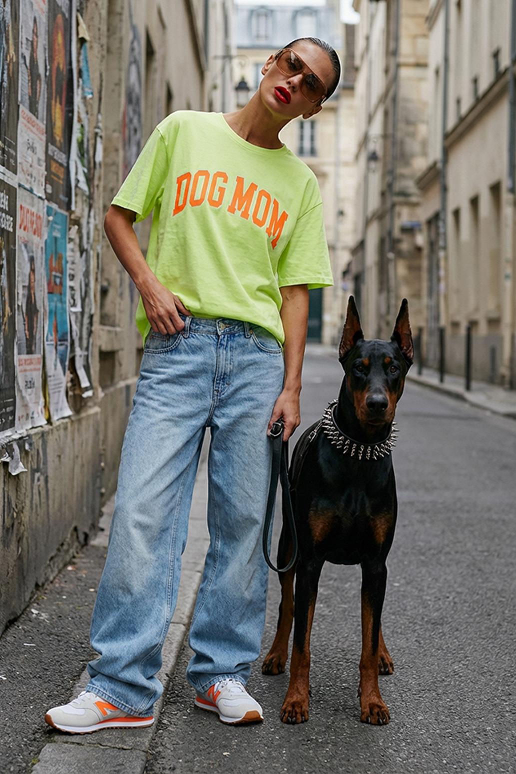 • výrazný potisk/nápis „DOG MOMv oranžovém tónu funguje jako stylový podpis, který řekne všechno za vás ještě dřív, než vyrazíte ze dveří
