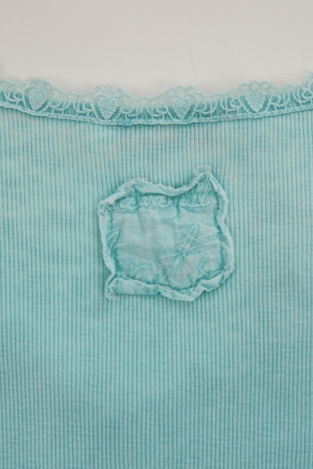 • žebrované tričko dámské s krajkou oblíbené značky PECA del SOL v jemném zeleno-modrém odstínu – Aqua