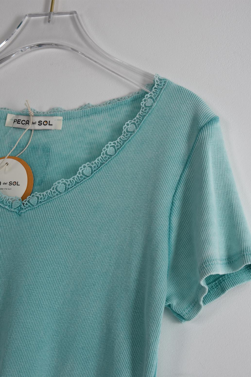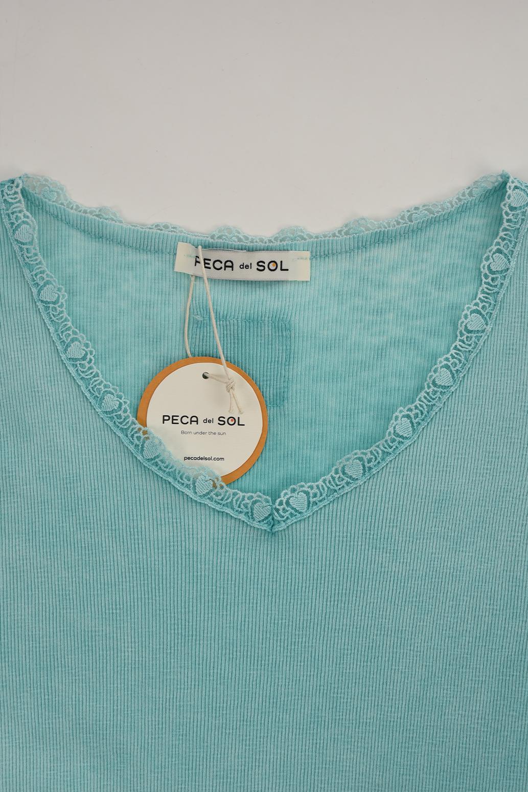 ŽEBROVANÉ TRIČKO S KRAJKOU U VÝSTŘIHU PECA del SOL Aqua