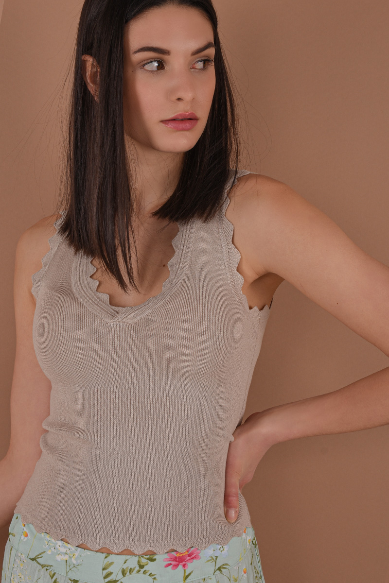 BÉŽOVÝ ÚPLETOVÝ TOP Jacqueline de Yong