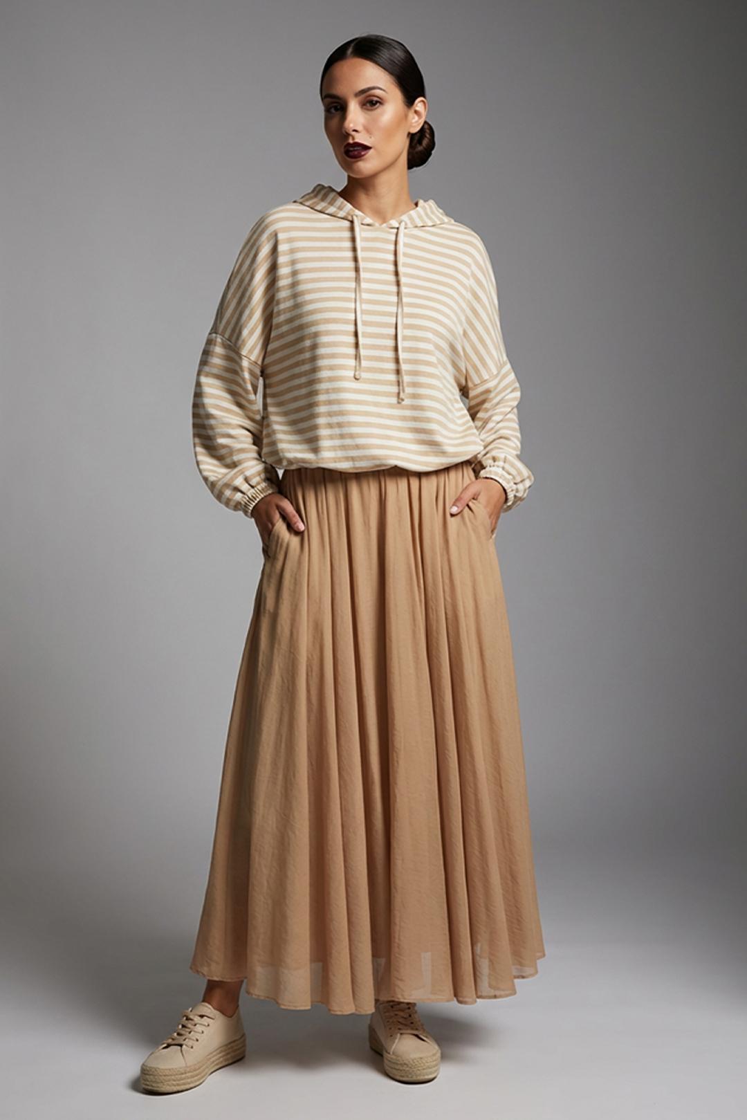 BÉŽOVÁ DLOUHÁ SUKNĚ S KAPSAMI